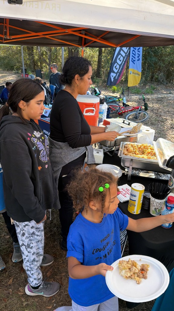 Races take place on Saturdays for middle school riders and Sundays for high school riders. Families should prepare for travel, as race locations vary across Alabama. The courses are set-up Friday to allow for teams to pre-ride the course. We ask Middle School team parents and coaches to set up our team pit area Friday afternoons which will be followed by a middle school pre-ride of the race course, if they are in town early. Saturday is a full day of middle school races and awards, followed by a high school pre-ride. That evening the team will also host a team dinner (the team contributes the main dish and the other families provide side dishes, desserts, and drinks). Sunday morning dawns early with the high school pre-ride, high school races, and awards. High school parents & coaches will handle clean up on Sunday. Races may be adjusted to avoid bad weather.